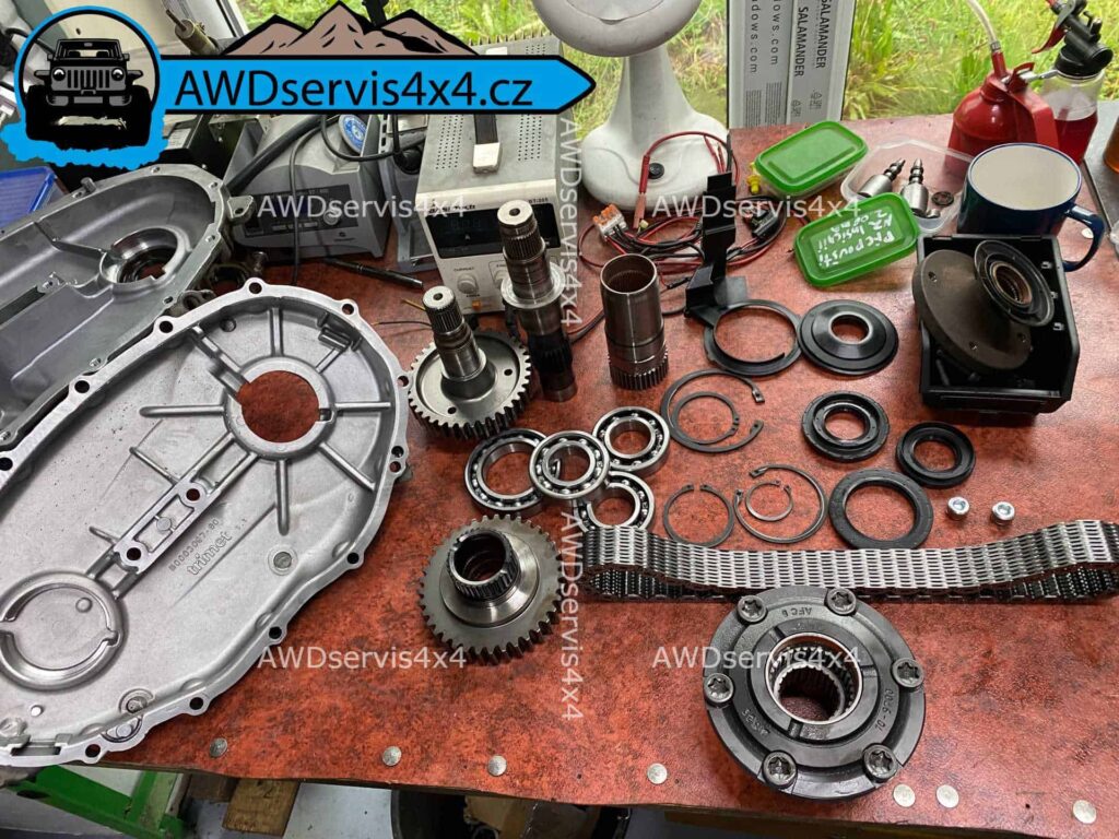 - repase transfer boxu – ložiska, řetězy, ozubená kola a těsnění